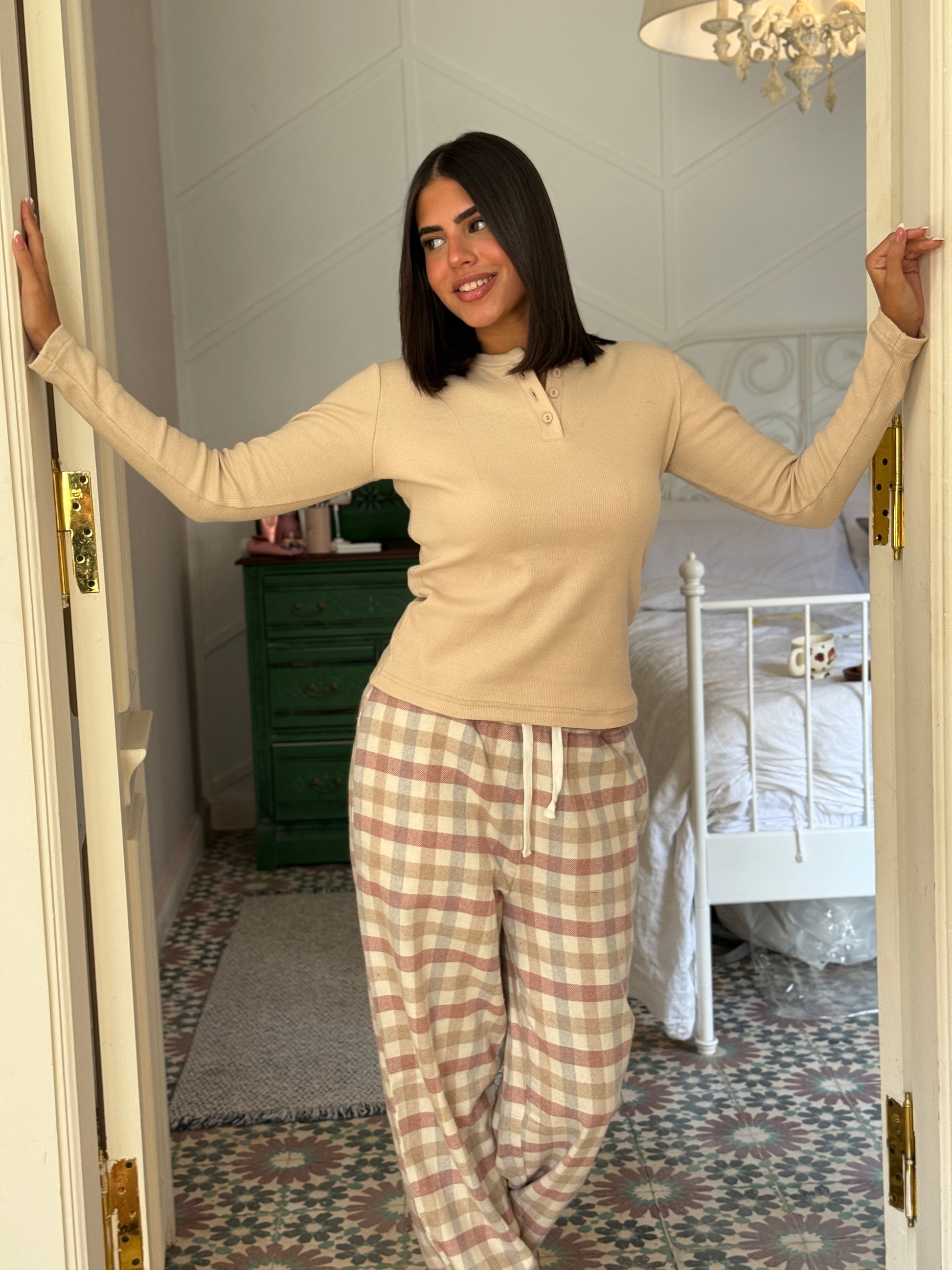Wrap yourself in warmth and effortless style with our Woolen Plaid Set – Beige Checkered.